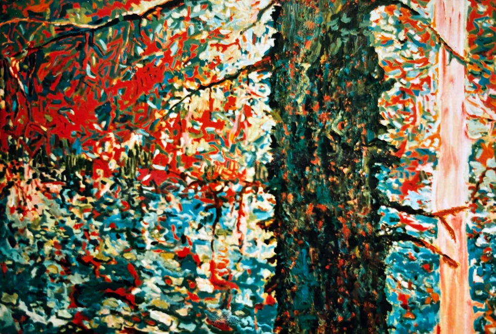 This 5’ x 8’ painting was the image used on the postcard invitation for my exhibition “From High Places” at Gallery on Whyte in Edmonton (later known as Bugera/Kmet Galleries). The painting was featured in a lengthy and very complimentary review in The Edmonton Journal, with colour photo included. Mentions of The Group of Seven and Tom Thomson were related. Best review ever!